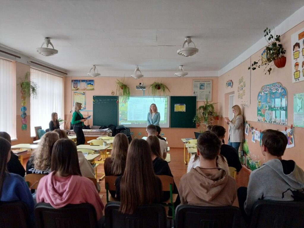 On April 2, 2025, teachers of the Faculty of History, Political Science and International Relations of the Vasyl Stefanyk Precarpathian National University held two career guidance meetings with students of grades 9–11 of the Starobohorodchansky Lyceum of the Starobohorodchansky Village Council and the Sadzhavsky Lyceum of the Bogorodchansky Village Council of the Ivano-Frankivsk District. Teachers Bohdan Paska (leading specialist of the Institute of History, Ethnology and Archaeology of the Carpathians, responsible for career guidance work at the faculty), Olena Berezovska-Chmil (associate professor of the Department of Political Science), Liliya Mykhailyshyn and Iryna Sernyak (respectively, head of the department and associate professor of the Department of International Economic Relations), as well as 2nd-year undergraduate student Andriana Ostash presented the educational programs “Secondary Education (History and Civics)”, “History and Archaeology”, “Political Science”, “Political Science. National Security”, “International Relations, Public Communications and Regional Studies”, “International Economic Relations”, “International Business Management”, which will give potential university applicants the opportunity to obtain a professional specialty of higher education.